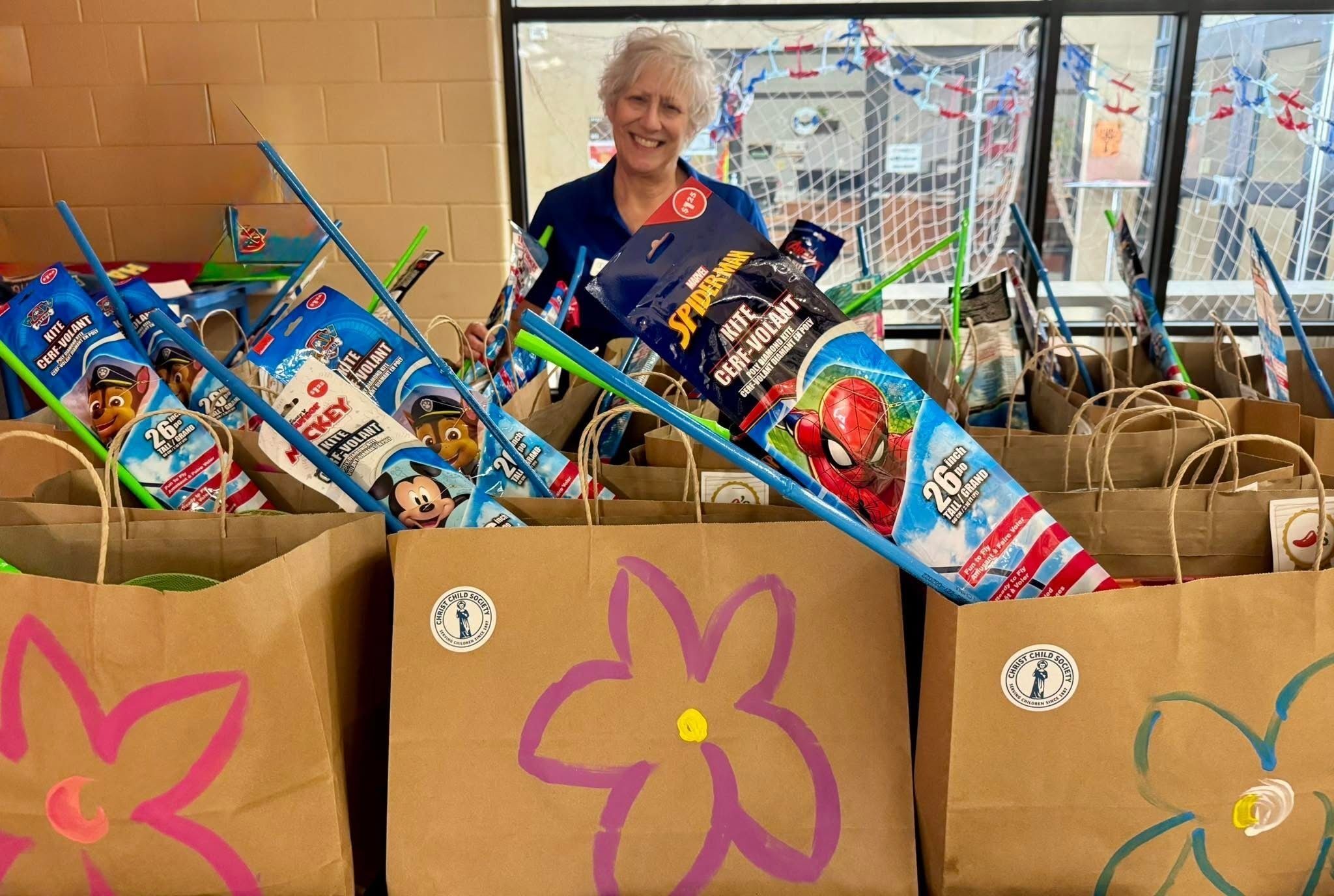 Christ Child Dallas organizes four "Family Engagement Nights" a year at a local elementary school for the school's first, second and third graders and their families. The students and their siblings visit fun activity stations organized by Christ Child members, with help from school coordinators. Everybody enjoys a pizza dinner and each student takes home books and an activity bag. Every Engagement Night has a theme. The most recent one was called "Books in Bloom." The Dallas group gave away a lot of books that night. It may interest you to know that they did not pay for the books. Instead, they helped out another charity called "Book Drive for Kids" and instead of getting a paycheck for their work, the Dallas chapter was paid in paperbacks (and some hardbacks).
